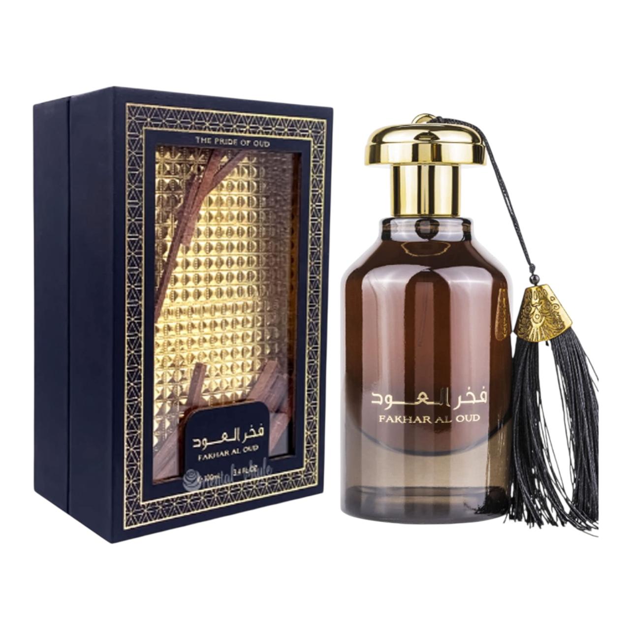 Fakhar Al Oud by Ard Al Zaafaran is a Woody Spicy fragrance for women and men. Fakhar Al Oud was launched in 2021. Top notes are Saffron, Agarwood (Oud), Cypriol Oil or Nagarmotha and Nutmeg; middle notes are Gurjan balsam, Guaiac Wood, Sandalwood, Cedar, Patchouli and Jasmine; base notes are Vanilla, Amber, Tonka Bean and Musk.